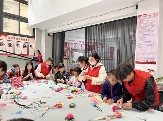 为了更好地弘扬中华民族传统美德,培养未成年人从小养成学会感恩、尊敬父母的优秀品德,在母亲节当天,凤凰街道大营社区新时代文明实践站、大营社区综合文化服务中心联合六盘水市师范学院教育科学学院文化志愿者共同开展“艺术教室,我爱妈妈”手工活动。辖区20余名小朋友参加了此次活动,和志愿者一起制作母亲节贺卡,扭扭棒花束。