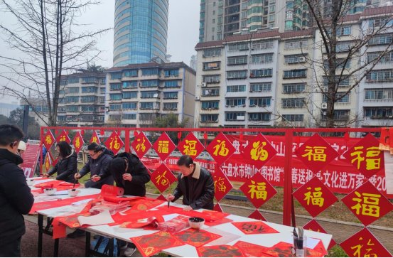 岁末年初,节日氛围正逐渐浓郁。为弘扬中华优秀传统文化,营造浓厚的节日氛围,丰富群众的文化生活,营造吉祥如意的春节氛围。1月15日、1月16日六盘水市图书馆、汪家寨镇人民政府、钟山区图书馆于春节前夕联合开展第四届“新春送祝福·文化进万家”暨2025蛇年春节活动,通过优质的文化活动将新年美好的祝福送进百姓家。