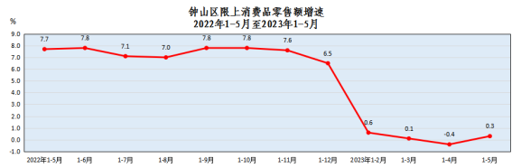 1—5月,全区限上消费品零售额同比增长0.3%。